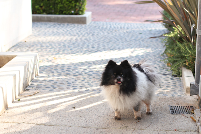 Wanted to introduce you to my little furry friend Sunny. Emil and I met Sunny and his owner in Malibu and just had to include him in this post. He was so sweet and friendly, like most of Pomeranians are, and we both fell in love with his spunky and playful temperament. I must have spent at least an hour playing with him:) I don't know if I told you but I am absolutely crazy about dogs. I have a Pomeranian named Sable who lives in Canada with my mom and brother. I miss her dearly so anytime I see these fluffy, sweet dogs I turn into a blubbering, drooling, baby-talking mush...