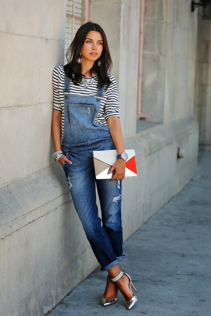 Good morning, Everyone! Hope your week is going great! I just wanted to say a quick hello and share a few pics of my newest obsession, well, ... more like new and old obsessions, because my love affair with these Armani metallic heels is still in full swing:) But I digress, you see, for the past few months, I've been searching for a pair of denim overalls. Not particularly fond of super fitted styles, I wanted to find something perfectly slouchy, preferably in distressed denim.