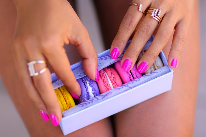 Next, me and my new shorts headed to down town to run some errands, and interestingly enough my good luck continued. Empty parking spaces opened up right in front of me, I came in to my favorite bakery just in time to grab the very last Rose-flavored macaroon and the flower shop I frequent, had just one bouquet of daisies left in my favorite shade of pink. Yes, it was definitely one of those days... Kinda wishing every day could be like this, though I suppose if every day was like this, I probably wouldn't appreciate it as much:)